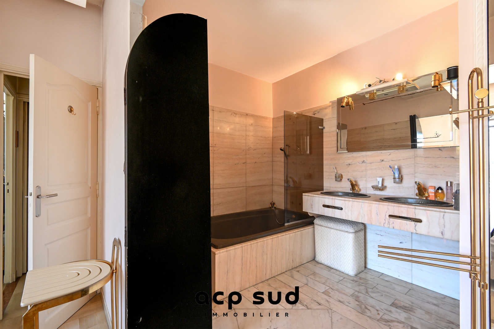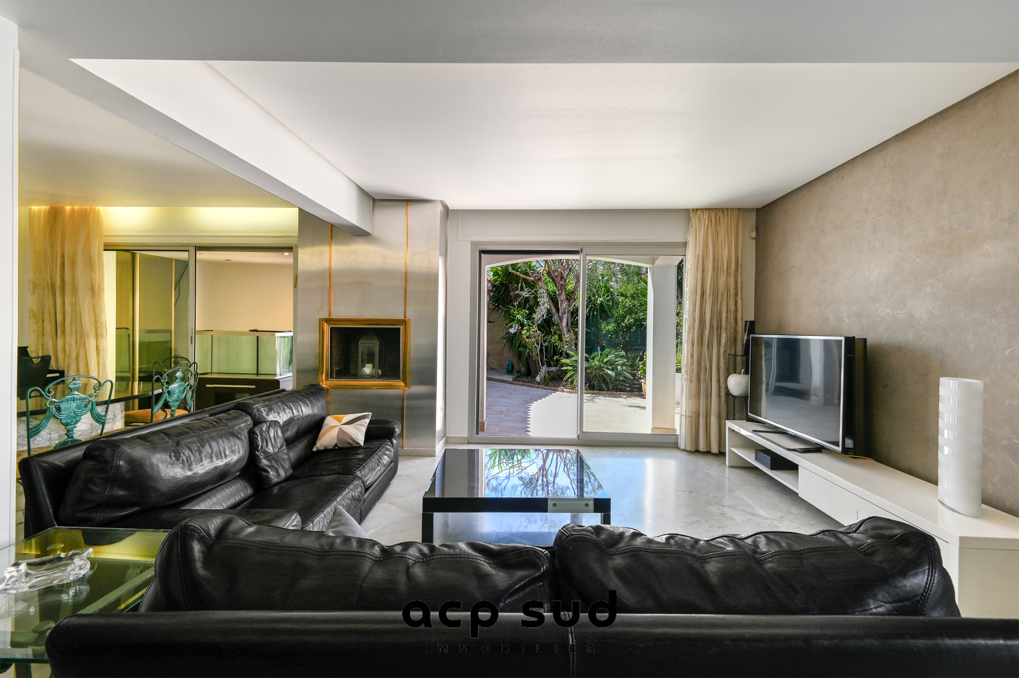 Le vaste séjour de 55 m² donne accès à une jolie terrasse ensoleillée,