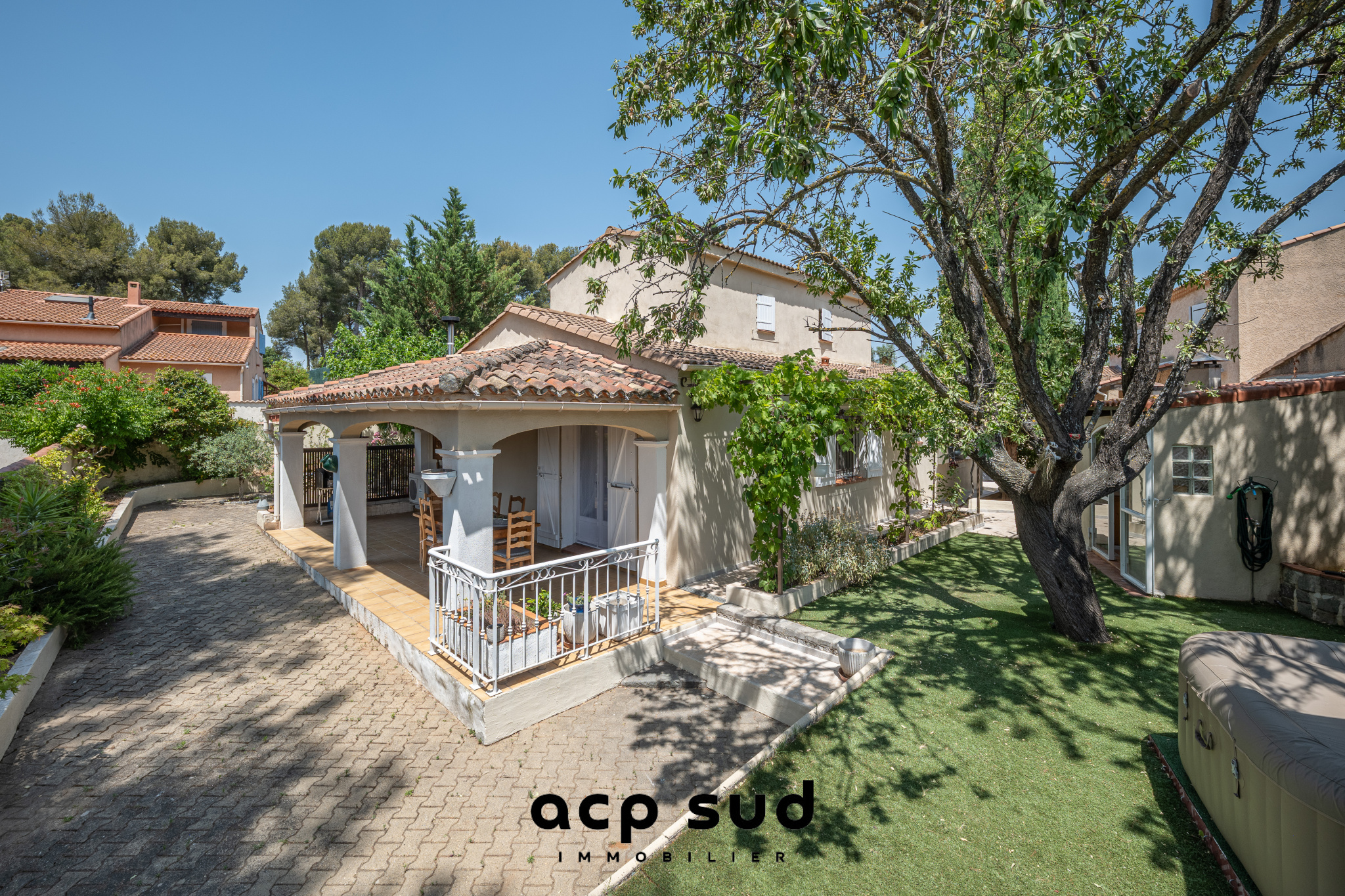 Maison de type 5 avec garage de 18m2 (avec possibilité de l'intégrer à la maison) terrasse couverte , cuisine d'été et espace avec jacuzzi. ( Photo 1 : projection 3D avec piscine ) Idéale pour une famille. Se compose au rez de chaussé, un sas d'entrée, un spacieux salon sam, une cuisine ouverte aménagée et équipée avec cellier, 3 chambres, un wc séparé et une salle d'eau. A l'étage, un coin bureau, une chambre avec point d'eau et wc. clim réversible, double vitrage. ASL : 60€/an